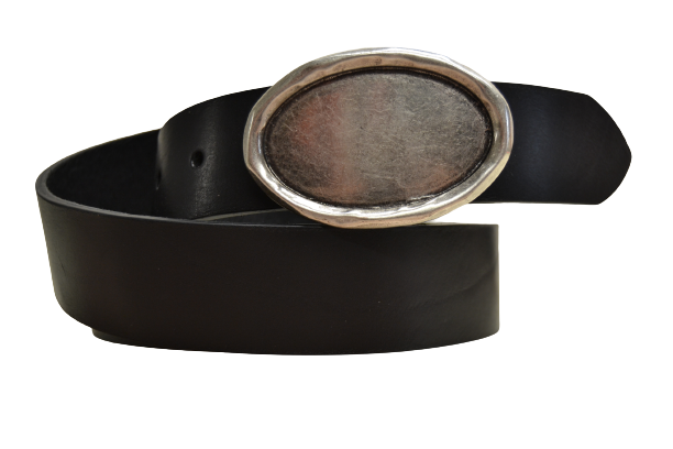 Cintura artigianale in vero cuoio di toro super resistente con fibbia colore Argento Nichel.